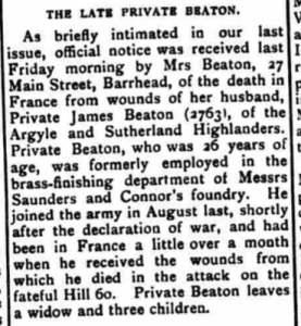 Regiment/Service: Argyll and Sutherland Highlanders (1st Bn)
