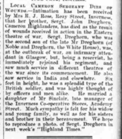 Regiment/Service: Cameron Highlanders (2nd Bn)