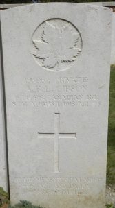 Headstone transcript – 193062 Private A. B. L. Gibson 15th BN. Canadian Inf. 8th August 1918 age 28. To the memory of a loving husband and daddy, son and brother.