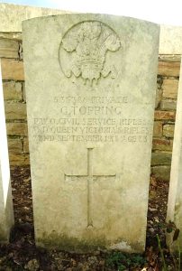 Headstone transcript – 535386 Private G. Topping P.W.O. Civil Service Rifles and Queen Victoria’s Rifles, 22nd September 1918, Age 23.